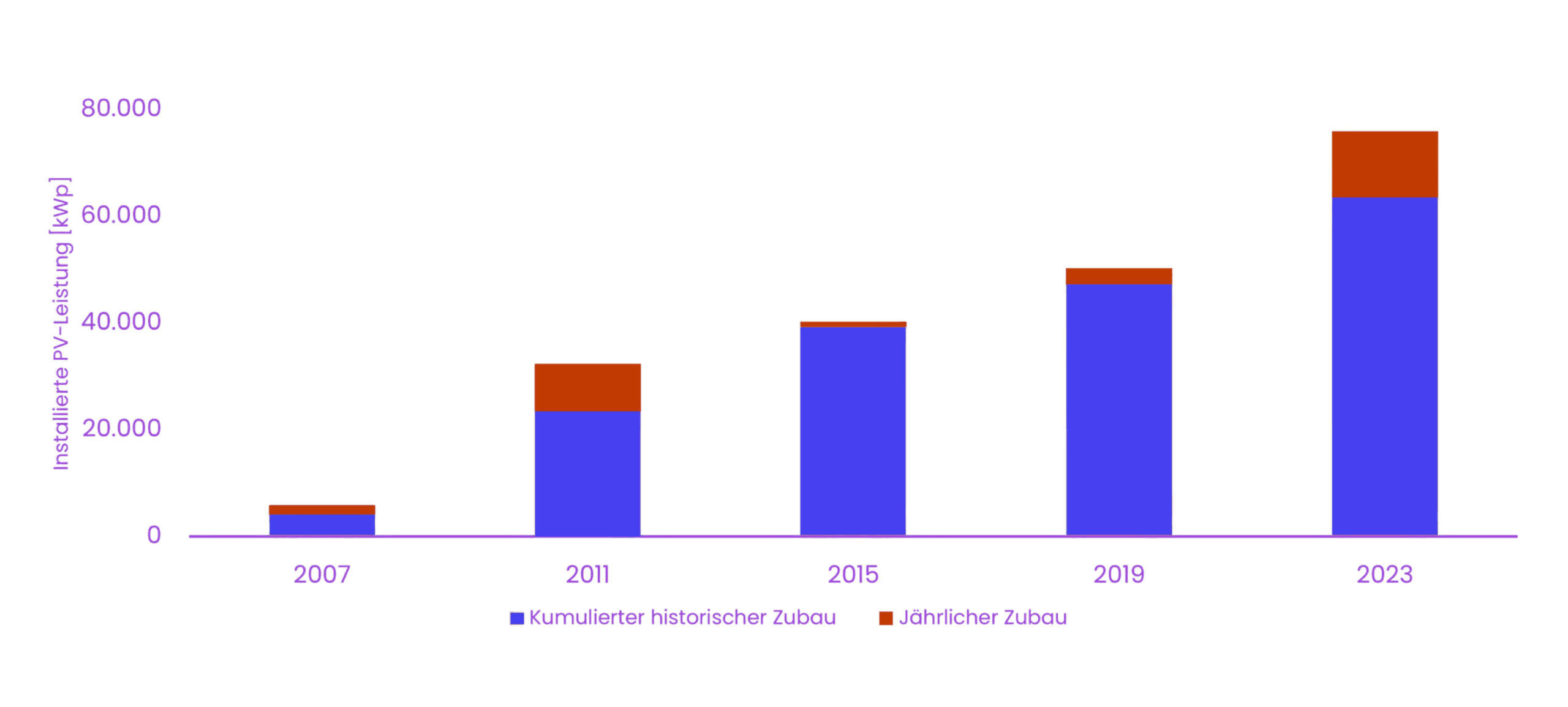 Entwicklung PV-Anlagen in Ingolstadt 2007-2023