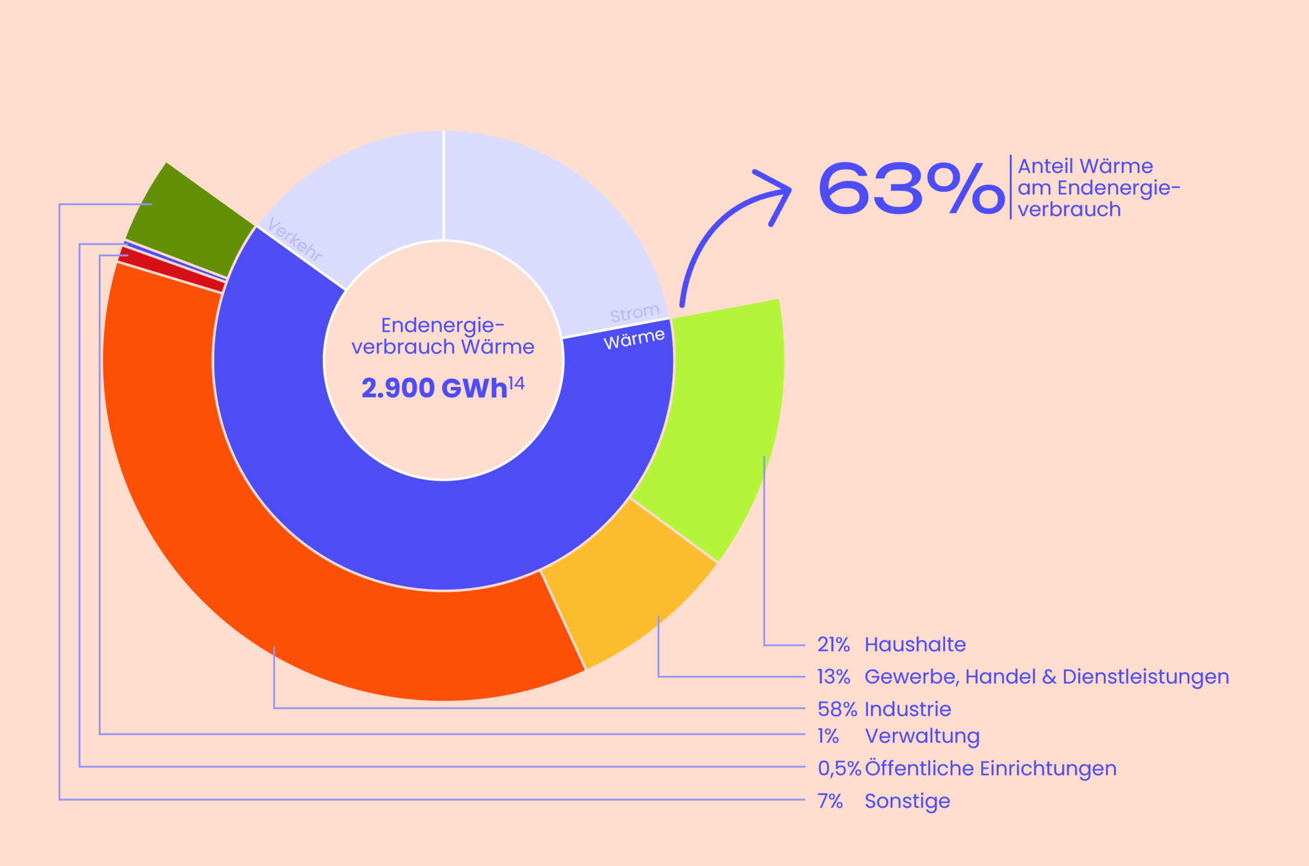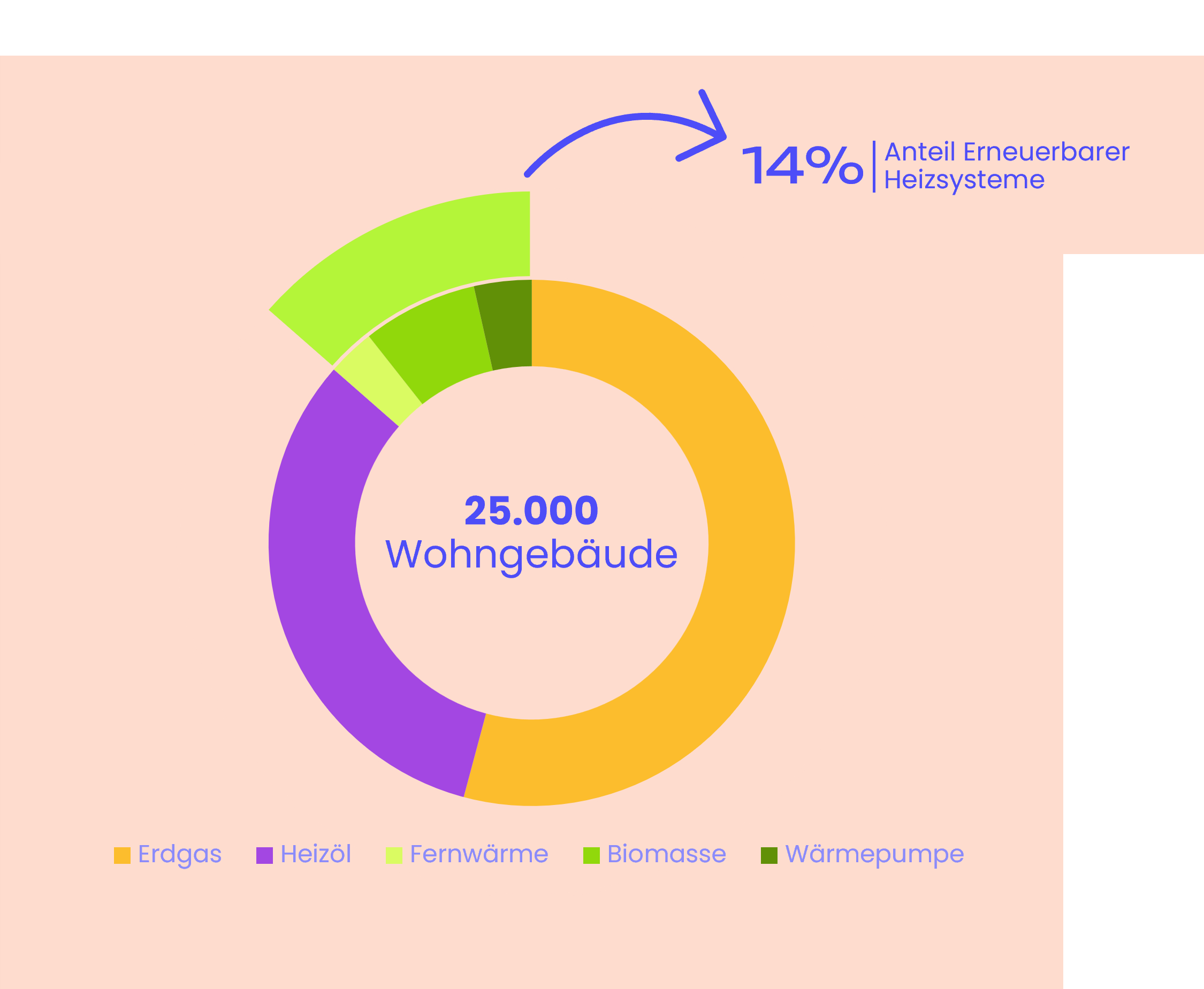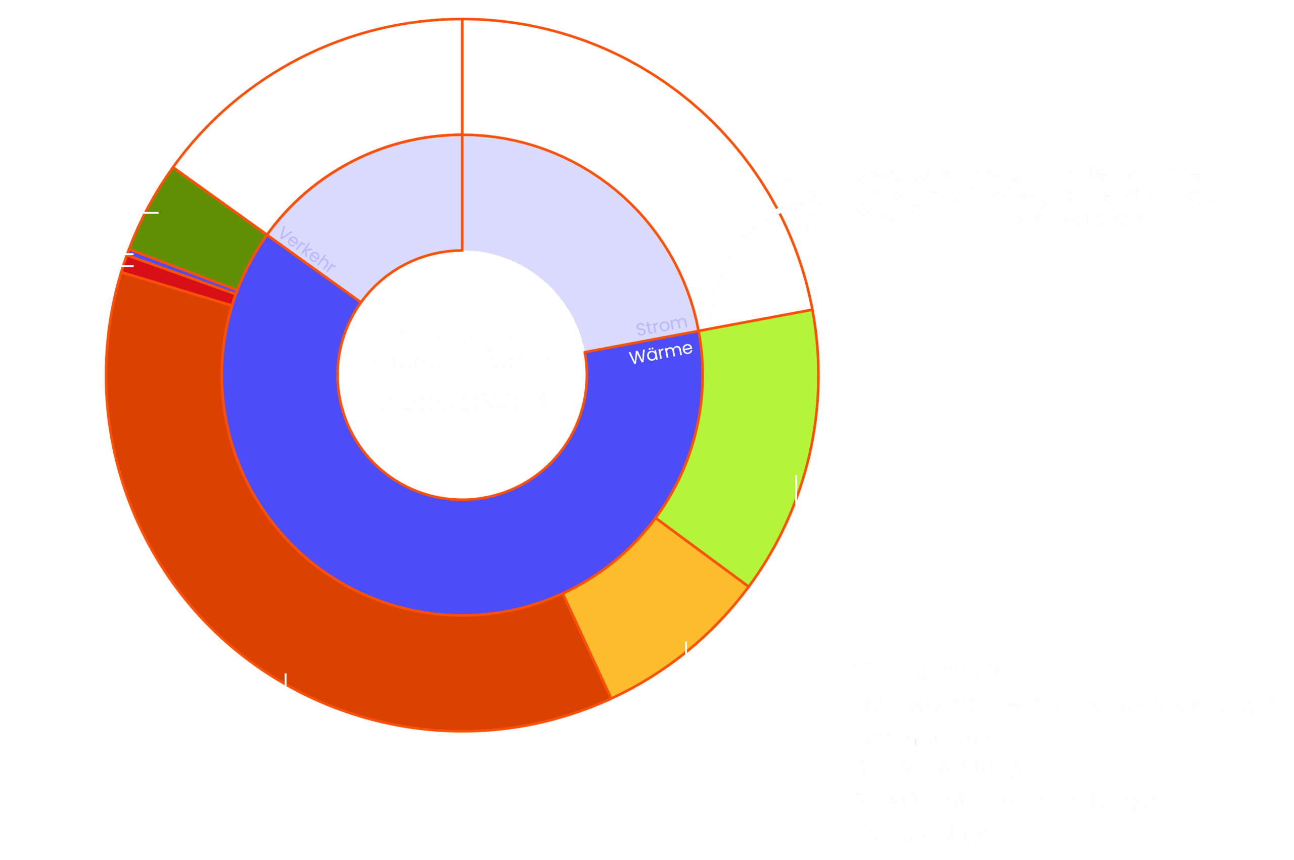 Im Wärmesektor dominiert der Erdgasverbrauch die Emissionen. Sowohl für industrielle Zwecke als auch zur Gebäudeheizung wird im Jahr 2023 überwiegend Erdgas eingesetzt. Wärmepumpen und Fernwärme sind die klimafreundliche Alternative zu fossilen Energieträgern. Regenerative Gase finden insbesondere im Bereich der Industrie ihren Einsatz.
